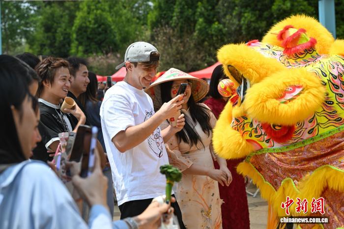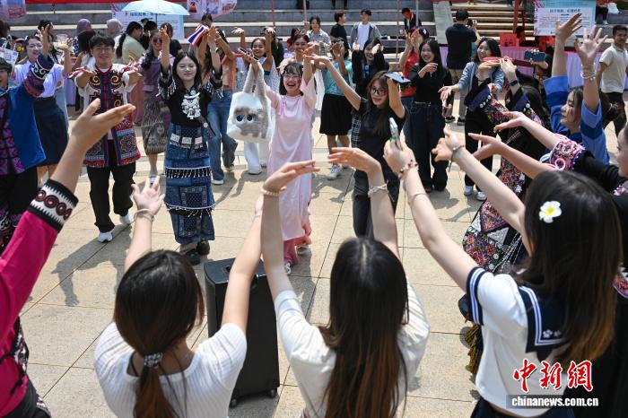 4月23日,中中教死一块感受云北平易近族跳舞。中新社记者 李嘉娴 摄