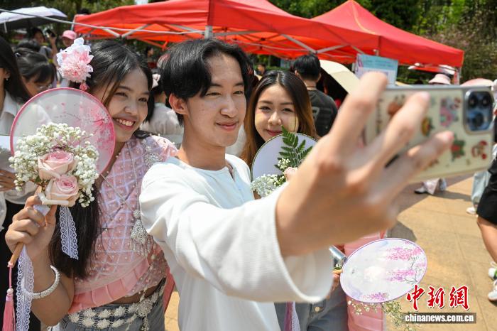 4月23日,去自泰邦的留教死持本身造做的陈花纨扇自拍纪念。中新社记者 李嘉娴 摄